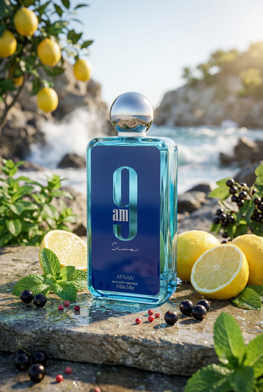 9am Dive by Afnan is a Aromatic Aquatic fragrance for women and men. 9am Dive was launched in 2022. The nose behind this fragrance is Imran Fazlani. Top notes are Lemon, Mint, Black Currant and Pink Pepper; middle notes are Apple, Cedar and Incense; base notes are Ginger, Sandalwood, Patchouli and Jasmine.
