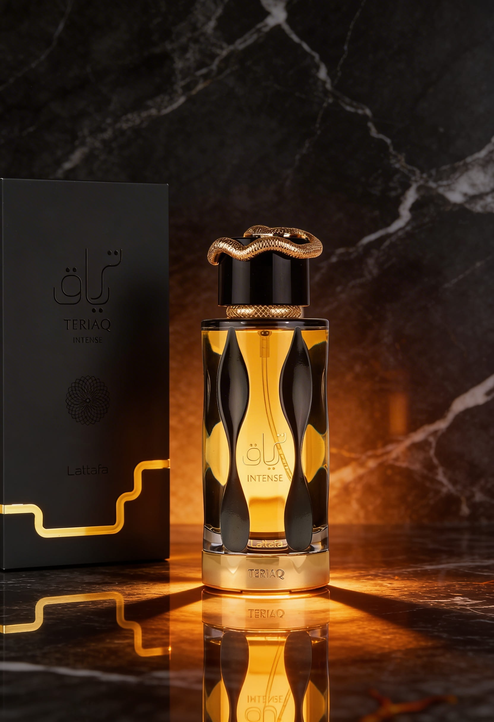 Teriaq Intense by Lattafa Perfumes is a Oriental Spicy fragrance for women and men. This is a new fragrance. Teriaq Intense was launched in 2024. The nose behind this fragrance is Quentin Bisch. Top notes are Saffron and Bergamot; middle notes are Plum Liquor and Cinnamon; base notes are Amber, Tonka Bean and Benzoin.