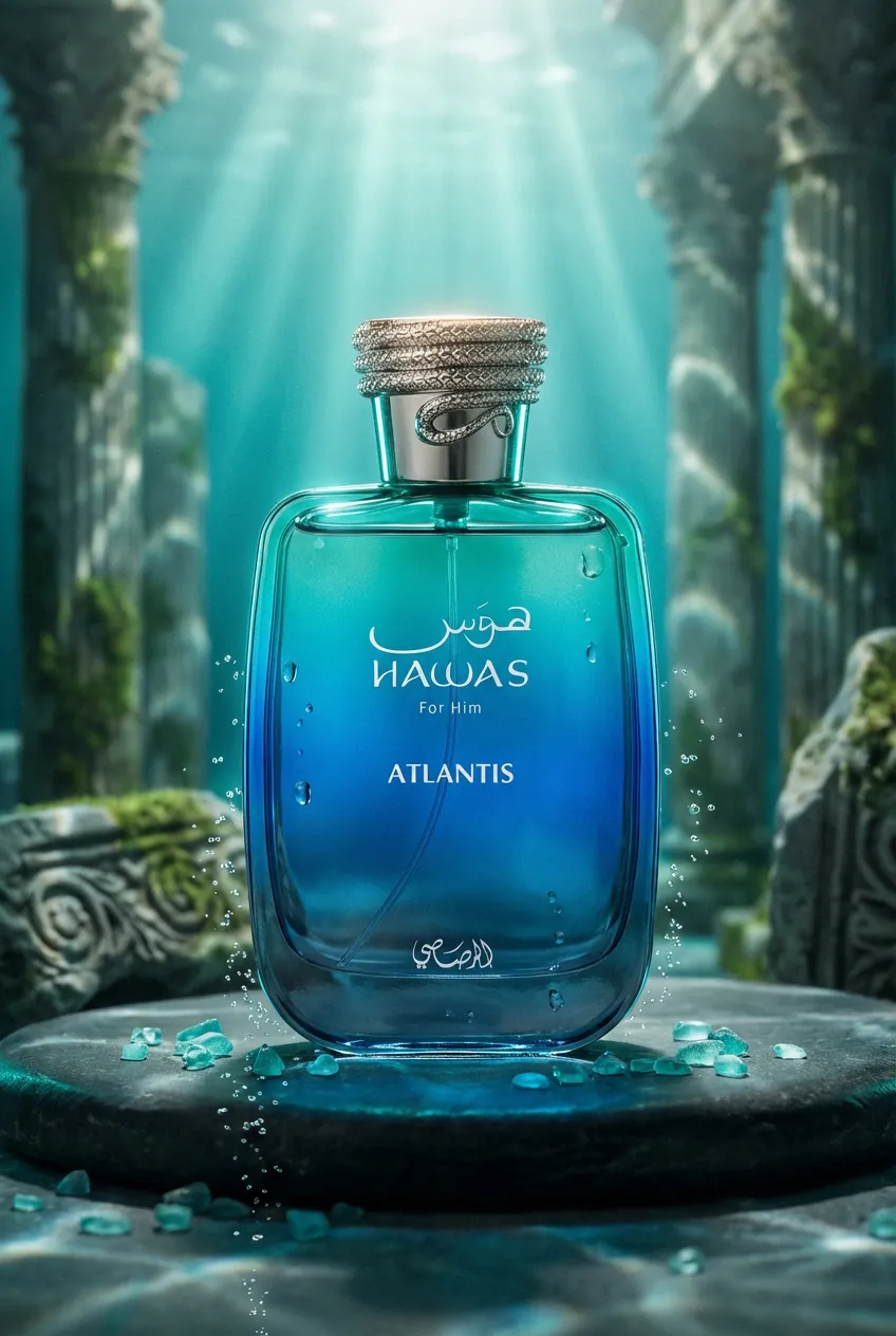 Hawas Atlantis by Rasasi is a fragrance for women and men. This is a new fragrance. Hawas Atlantis was launched in 2025. Top notes are Bergamot, Lemon, Apple and Cinnamon; middle notes are Watery Notes, Orange Blossom, Plum and Cardamom; base notes are Driftwood, Ambergris, Musk and Patchouli.